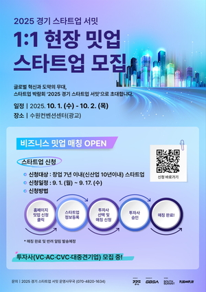 [기계신문] 경기도와 경기도경제과학진흥원(이하 경과원)이 오는 10월 1일부터 2일까지 수원컨벤션센터에서 개최되는 ‘2025 경기 스타트업 서밋(G-SUMMIT 2025)’의 핵심 프로그램 ‘1:1 현장 밋업(Meet-up)’ 참가 스타트업을 9월 17일까지 모집한다.‘경기 스타트업 서밋’은 경기도가 주최하고 경과원이 주관하는 국제 스타트업 박람회로, 혁신 스타트업과 글로벌 투자자 간 교류를 통해 해외 진출 기회 확대와 실질적인 투자 성과 창출을 목표로 한다.올해부터는 ‘G-SUMMIT’(지서밋)이라는 브랜드 아이덴티티(BI)를 확