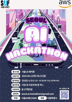 [기계신문] 서울AI재단이 AWS와 함께 AI 기반의 공공서비스 개발 및 청년 취업·창업을 지원하는 ‘2025 서울 AI 해커톤’을 개최, 오는 8월 31일(일)까지 참가자를 모집한다.이번 대회는 AI 기술과 클라우드 활용 역량을 높이고 실전형 프로젝트 경험을 쌓을 수 있는 기회를 제공하기 위해 마련됐다. 참가자에게는 AWS 클라우드 크레딧과 AI 전문가의 1:1 멘토링이 제공되며, 수상자에게는 취·창업에 실질적으로 도움이 되는 맞춤형 교육이 제공된다.해커톤 공모 주제는 두 가지로 ▲2025년 서울시 시정 운영방향 중 하나를 선택해