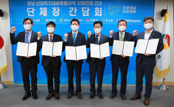 [기계신문] 경상남도는 창원시 진해구와 통영시, 거제시, 고성군에 대한 산업위기대응특별지역 지정 연장을 요구하는 대정부 건의문을 정부에 제출했다고 14일 밝혔다.