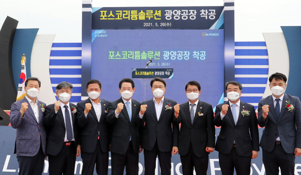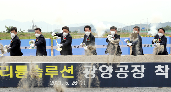 [기계신문] 포스코리튬솔루션㈜은 26일(수) 전남 광양만권 율촌산업단지에서 최정우 포스코 회장, 김영록 전남도지사, 김경호 광양 부시장, 김갑섭 광양만권경제자유구역청장 등 50여명이 참석한 가운데 리튬 생산공장 착공식을 개최했다.