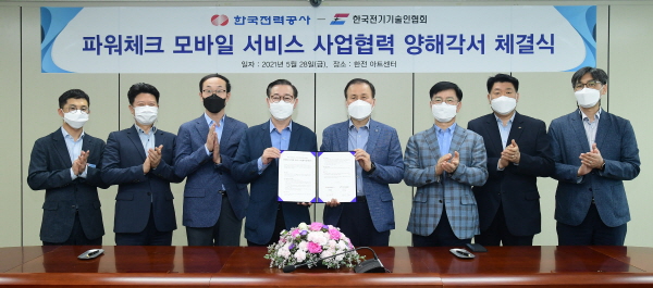 [기계신문] 한국전력과 한국전기기술인협회는 지난 28일(금) 한전 아트센터에서 김태용 한전 디지털변환처장과 남기범 한국전기기술인협회 경영관리본부장 등 10명이 참석한 가운데 ‘파워체크 모바일 서비스’ 사업협력 MOU를 체결했다.