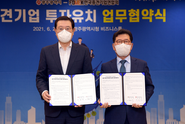 [기계신문] 광주광역시는 29일 시청 비즈니스룸에서 한국중견기업연합회와 자동차‧에너지 등 광주 주력산업 중견기업 투자유치 활성화를 위한 업무협약을 체결했다.