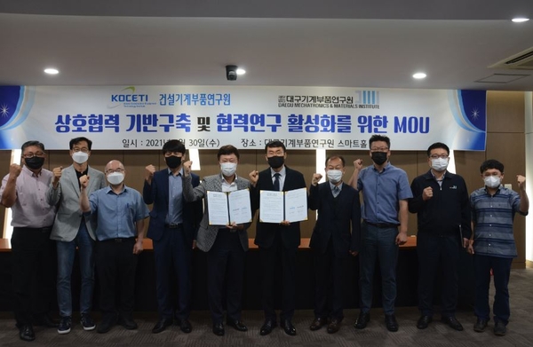 [기계신문] 건설기계부품연구원(KOCETI)과 대구기계부품연구원(DMI)은 지난 6월 30일(수) 건설기계, 농기계, 특장차 등 이동형 작업기계 기술 분야 상호 발전과 신사업 발굴을 위한 업무협약(MOU)을 체결했다.