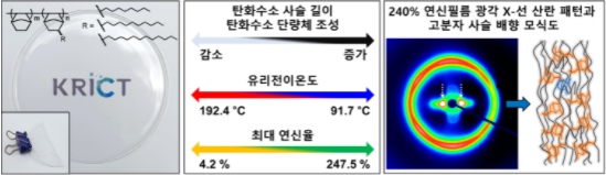 또한 연신율을 ’4~245%‘ 범위까지 제어해 기존 대비 최고 2배 이상 늘어나는 물성을 확보하여 쉽게 부러지는 종래의 노보넨계 환형올레핀 고분자 소재의 단점을 극복하였다. 이는 포항가속기 연구소의 광각 X-선 산란(WAXS) 분석을 통해 연신율 증가를 구조적으로 규명하였다.