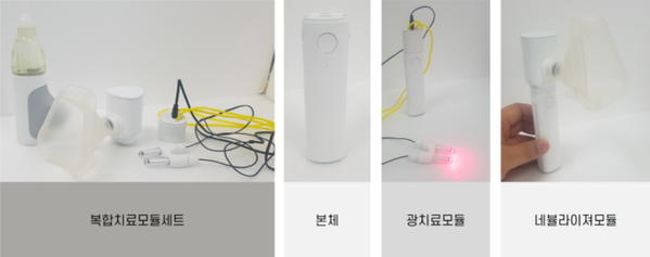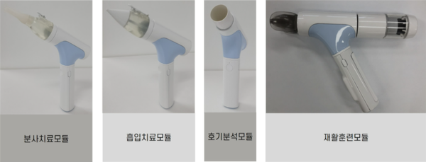 치료모듈은 광치료, 흡입/분사치료, 네뷸라이져 분무치료 등을 할 수 있고, 재활치료 모듈의 경우 호흡기 근(筋)의 재활 훈련도 가능하다.