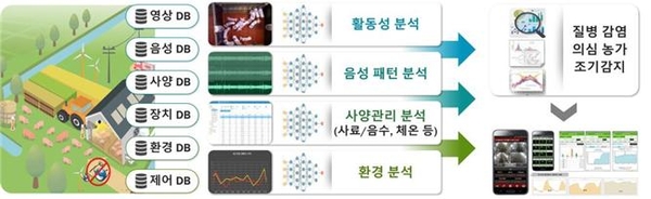 연구진이 개발한 플랫폼은 질병관리와 방역에 필요한 다양한 기능이 탑재되어있다. 먼저 가축이 질병에 걸렸을 때 내는 소리와 행동 변화 등 관련 데이터를 수집해 이상징후를 감지하는 알림 기술을 만들었다. 인공지능(AI)과 센서로 가축을 모니터링, 분석하면서 조기에 감염 여부를 파악하는 방식이다.