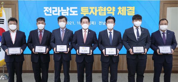 이날 협약식에는 김영록 전남도지사, 김만중 디렉스폴리머(유) 대표, 하형수 남해화학㈜ 대표, 김준석 ㈜카본헥사 대표, 권기영 한화솔루션㈜ 부사장, 강인규 나주시장과 박현식 여수부시장이 참석했다.