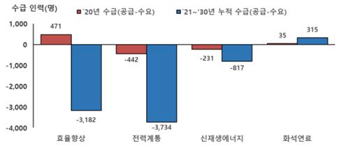 정부는 에너지 기술인력 양성을 위해 최근 4년간(2017~2020년) 에너지인력양성사업에 1,454억 원을 지원하여, 에너지산업 기술인력 4,563명(신재생에너지 분야 778명 석·박사급 인력 포함)을 양성하였다.