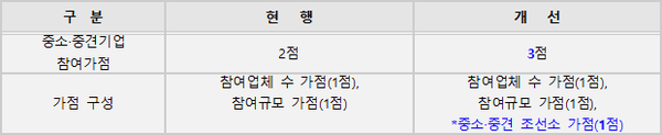 아울러 수주 가능사업 축소로 어려움을 겪고 있는 중소 조선소에는 500톤 미만의 중소함정 연구개발 사업 참여 시 가점을 부여하는 기준을 추가하여 대형 조선소와의 경쟁에서 불리하지 않도록 개선하였다.