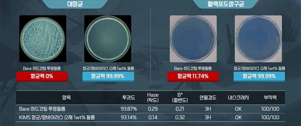 이 소재는 첨가제로 사용하기 때문에 기존 제품에 추가 공정 없이 자외선(UV) 및 열경화 작업이 가능하며, 수지와 혼합되어 항균 효과를 반영구적으로 지속 가능한 것이 장점이다. 또한, 개발된 항균·항바이러스 첨가제는 모든 구성품이 유기 항균제 및 나노 화합물이 전혀 사용되지 않는 무독성 물질로 이루어져 있다.