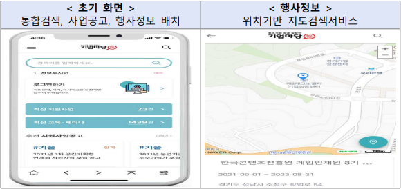 또한, 기업마당의 핵심 콘텐츠인 지원사업 공고 및 행사정보의 경우 큐알(Quick Response) 코드도 함께 제공해 모바일로도 쉽게 정책정보를 찾아보고 사회관계망서비스(SNS)를 활용해 공유할 수 있도록 구현했다. 아울러 위치기반 행사장소 검색서비스를 활용하면 지역별 행사장소도 손쉽게 찾을 수 있다.