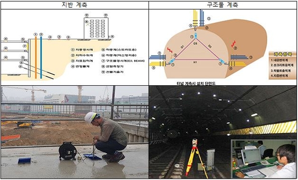 계측관리용역의 세부 공종은 연약지반, 경사면 등의 움직임을 측정하여 인접구조물의 안정성을 평가하는 ①지반 계측과 터널, 교량 공사가 주변시설이나 공사 목적물에 미치는 영향을 파악하여 안전성 분석 및 구조물 보수시기를 결정하는 ②구조물 계측으로 나뉜다.