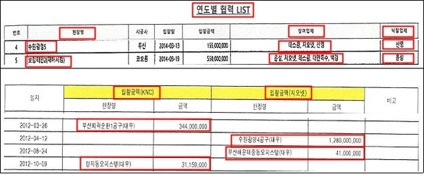 특히, 일부 업체들은 서로 도움을 주고받은 내역을 날짜별, 상대업체별로 정리하여 타 업체와 들러리 협의 시 기초자료로 활용하였는데, 업계에서는 이를 ‘장부’라고 불렀다.