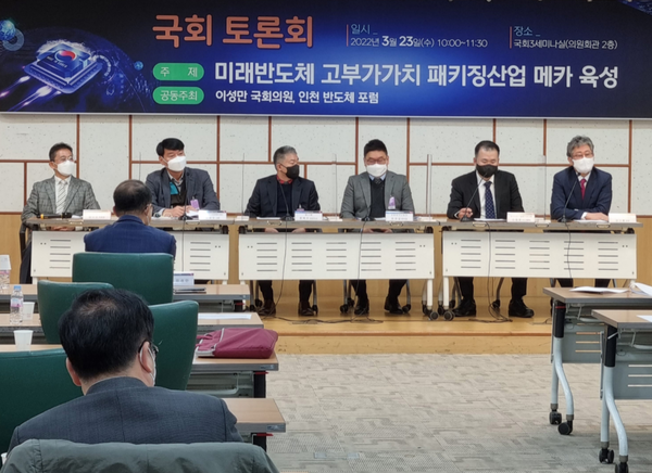 인천반도체포럼(인천 산학연관 협의체)과 이성만 의원(국회 산업통상자원중소벤처기업위원회·인천부평갑) 주최로 마련된 이날 토론회는 ‘미래반도체 고부가가치 패키징산업 메카 육성’을 주제로 진행됐다.