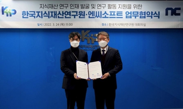 [기계신문] 한국지식재산연구원과 ㈜엔씨소프트는 지난 3월 24일 지식재산연구원 대회의실에서 지식재산 분야 연구 저변 확대를 위한 업무협약을 체결했다.