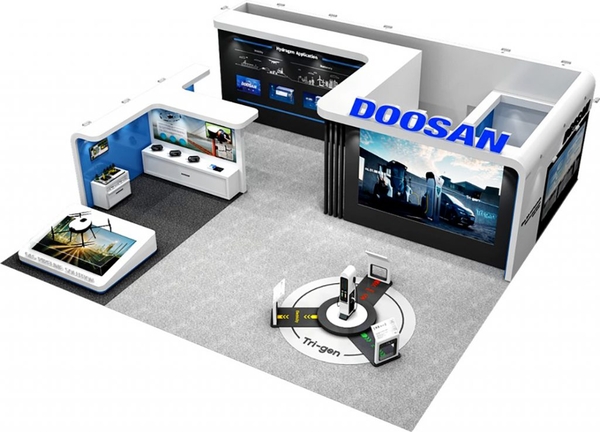 두산은 전시회에서 두산퓨얼셀, ㈜두산퓨얼셀파워BU, 두산모빌리티이노베이션(DMI)을 앞세워 수소연료전지를 활용한 다양한 제품과 솔루션을 소개한다.