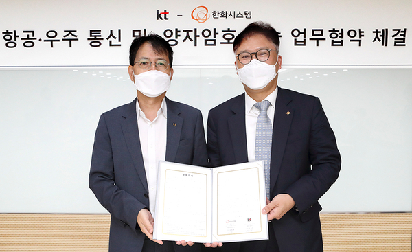 [기계신문] 한화시스템은 KT와 '항공·우주 분야 양자암호통신 기술개발 협력을 위한 양해각서(MOU)'를 체결했다고 12일 밝혔다.