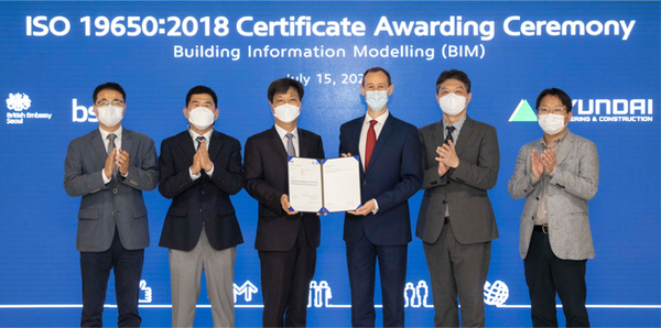 [기계신문] 현대건설은 지난 7월 15일 영국왕립표준협회(BSI)로부터 빌딩정보모델링(BIM) 분야 국제표준 ‘ISO 19650:2018’ 인증을 획득했다. BIM 국제표준은 2018년 발행된 BIM 정보관리 운영체제 관련 기준으로, 국제표준화기구(ISO) 창립멤버인 영국왕립표준협회(BSI)가 제정했다.