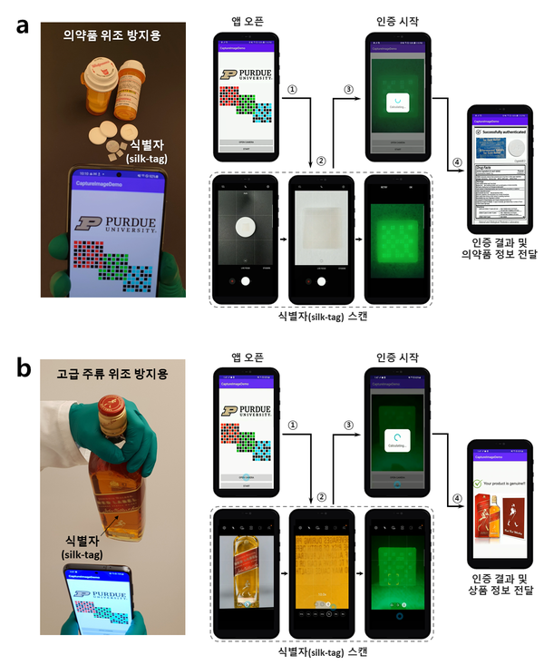 이번에 개발한 식별자를 적용하면 복제, 해킹이 어렵고 의약품, 주류, 식품 등 상품 자체와 일체화 공정이 가능해 포장 없이도 정품인증을 할 수 있다. 또한, 위조 상품 방지 기능 외에도 다양한 보안‧인증‧식별 분야에서 활용할 수 있을 것으로 예상된다. 이번 연구 결과는 올해 5월 국제학술지 ‘ACS Central Science’에 게재됐으며, 특허출원을 완료했다.