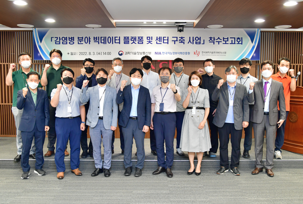 [기계신문] 한국과학기술연구원(KIST) 연구자원데이터지원본부 안재평 박사팀은 과학기술정보통신부와 한국지능정보사회진흥원이 선정하는 ‘감염병 대응 빅데이터 플랫폼 및 센터 구축사업’의 주관기관으로 지난 3일(수) 서울 성북구 KIST 본원에서 착수보고회를 개최했다.