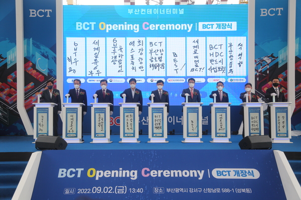 부산항 신항 컨테이너터미널(BCT)은 2012년 개장한 5부두 이후 10년 만에 개장된 터미널로, 국내 최초의 원격조종 첨단 무인자동안벽크레인(총 8기)과 5만 톤급 선박 3척 동시 접안, 현존 선박 중 최대 크기인 24,000 TEU급 초대형 컨테이너선의 안전한 이·접안능력을 보유하게 돼, 연간 1,749만 TEU 이상의 물동량 처리와 5만 4,000개 컨테이너 장치가 가능해졌다.
