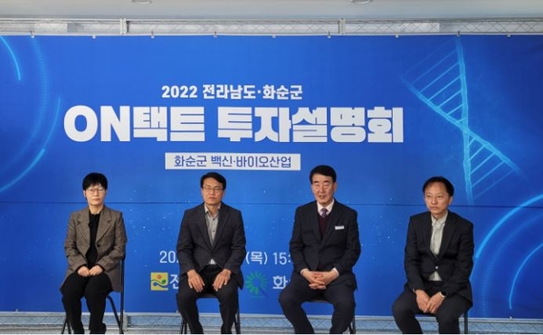 이귀동 전남도 투자유치과장은 “전남은 2010년 전국 유일의 백신산업특구로 화순을 지정해 급속한 성장을 이루는 등 백신·바이오산업을 선도하는 핵심 클러스터로 급부상하고 있다”며 “투자 기업이 성공하도록 백신·바이오산업 전주기 지원 인프라를 구축해 기업하기 좋은 환경을 만들겠다”고 말했다.