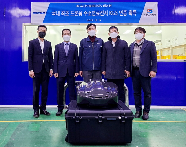 [기계신문] 두산모빌리티이노베이션(이하 DMI)는 자사의 수소드론에 장착되는 수소연료전지 파워팩 DP30M2S 제품이 국내 최초로 한국가스안전공사로부터 KGS 인증(KGS AH373)을 획득했다고 밝혔다.