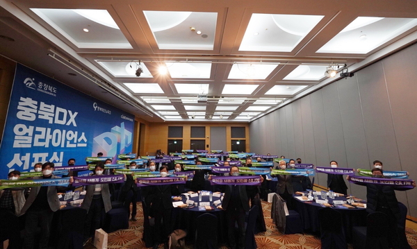 이날 행사에서는‘충북 디엑스(DX) 얼라이언스’가 충북 산업 디지털전환에 주도적인 역할을 수행하기를 기대하는 결의를 다지고, 디지털전환 인식 확산 촉진이 필요하다는 공감대를 조성하는 퍼포먼스를 진행했다.