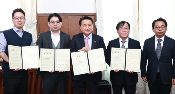 [기계신문] 충청북도는 지난 23일 ㈜키프론바이오, ㈜알데바와 597억 원 규모의 투자협약을 체결했다. 협약식에는 김영환 충북도지사, 강종구 ㈜키프론바이오 회장, 김진오·스티브 박 ㈜알데바 공동대표 등이 참석했다.