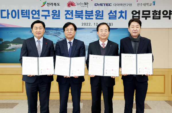 [기계신문] 전북도는 26일 김관영 전북도지사를 비롯해 우범기 전주시장, 홍성무 다이텍연구원장, 박진배 전주대학교 총장 등이 참석한 가운데 다이텍연구원 전북분원 설치 및 탄소복합체 가상공학센터 기반구축사업 추진을 위한 업무협약을 체결했다고 밝혔다.