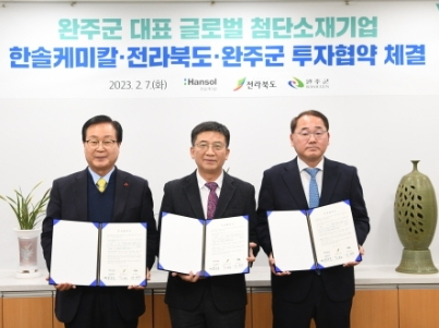 유희태 완주군수는 “전자소재와 정밀화학 분야에서 지속적인 연구개발을 통해 미래 핵심 산업인 반도체 산업의 국가 경쟁력 확보에 기여해온 한솔케미칼의 완주 추가 투자를 크게 환영한다”고 밝혔다.