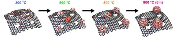 연구팀이 개발한 촉매는 백금(Pt)과 코발트(Co)라는 2개의 금속 원소가 결합한 구조다. 탄소 지지체 위에 두 원소를 두고 온도를 900℃까지 올리면, 두 금속 원소가 규칙적으로 배열되며 4nm 크기의 나노 결정을 이룬다.