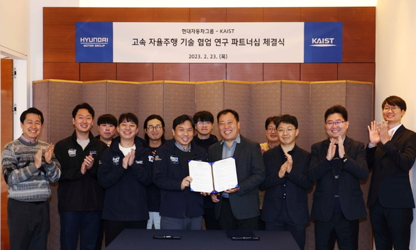 [기계신문] KAIST는 23일(목) 경기도 화성시 롤링힐스 호텔에서 현대자동차와 ‘고속 자율주행 기술 연구를 위한 파트너십’ 계약을 체결했다. 체결식에는 현대차 성낙섭 상무와 KAIST 심현철 전기및전자공학부 교수 및 연구진 등 주요 관계자들이 참석했다.