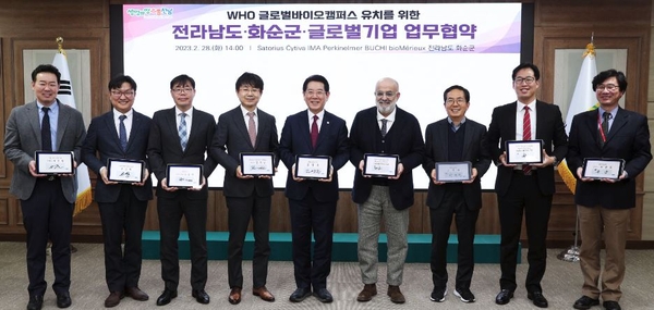 [기계신문] 전라남도와 화순군은 지난 2월 28일(화) 세계보건기구(WHO)의 바이오 인력 양성 프로젝트인 ‘글로벌 바이오 캠퍼스’ 전남 유치를 위해 외국계 바이오 장비기업 7개사와 업무협약(MOU)을 체결했다.