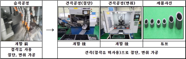 최병선 대표이사가 개발한 파이프 버 제거장치는 기존 선반에서 100초가 걸리는 생산 시간을 2초 이내로 단축하며 매우 획기적인 생산성 및 매출 증대의 성과를 달성했을 뿐 아니라, 절삭유를 사용하지 않는 건식 공정으로 폐수 발생이 전혀 없는 친환경 기술이다.