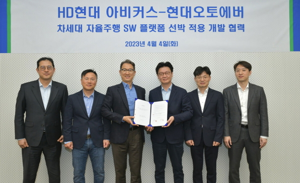 [기계신문] 현대자동차그룹 소프트웨어 전문 기업 현대오토에버와 HD현대의 선박 자율운항 전문 회사 아비커스가 4일 HD현대그룹 글로벌R&D센터에서 차세대 자율주행 플랫폼의 선박 적용을 위한 개발계약 체결식을 가졌다.