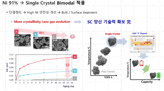 신종승 상무는 “고용량, 고안전성의 새로운 양극 소재를 개발한 것은 구성원 모두가 단합한 결과이며, 앞으로도 이차전지 소재의 개발에 힘을 모아 세계 시장에서의 우위를 확보하겠다”고 밝혔다.
