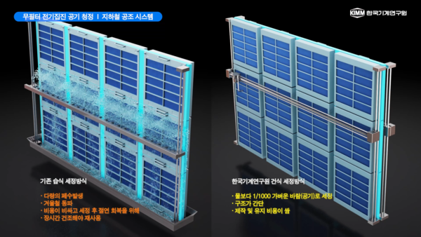 이번에 기계연구원이 개발한 기술을 적용하면 이온 발생 시 오존이 거의 발생하지 않으며, 집진부 세정 시 물 대신 바람을 사용해 2차 오염 발생 가능성이 없고 전력 사용도 80%를 절감할 수 있어 기존 방식보다 훨씬 경제적이다.