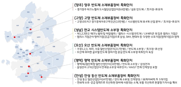안성시와 오산시는 경기 남부 앵커기업들이 위치한 화성-평택-용인-이천을 잇는 K-반도체 밸트 중심에 위치하고 있어 소부장 업체 유치를 통한 반도체 협력 생태계를 조성하겠다는 계획이며, 안성은 동신일반산업단지에 155만 ㎡, 오산은 가장지구와 세교3지구 등에 717만 ㎡의 계획을 수립했다.