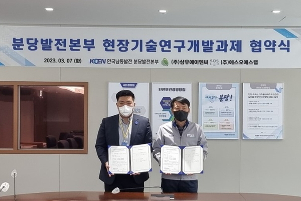 지난 3월 7일 남동발전과 에스오에스랩은 남동발전 분당발전본부 박성주 본부장, 에스오에스랩 정지성 대표 등 양사 관계자들이 참석한 가운데 ‘3D LiDAR 기술을 적용한 천장크레인 안전사고예방 감시시스템 개발’ 협력을 약속했다.