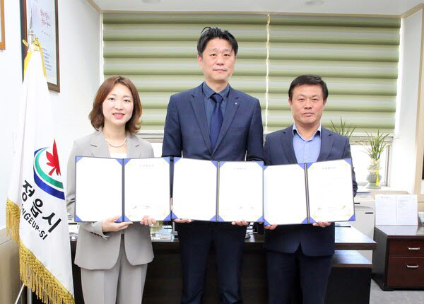 정읍시장실에서 진행된 이날 협약식에는 이학수 정읍시장과 양선화 전북도 기업유치추진단장, 김대규 ㈜세라잔첨단소재 대표를 비롯한 기업 관계자 등이 참석했다.