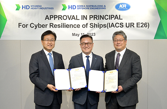 한국선급은 선박 사이버 복원력 설계의 타당성, 안전성 및 적합성을 검증, ‘선박 사이버 복원력 이행을 위한 기술 절차 및 방법론‘에 대한 기본인증서를 한국선급 최초로 HD현대중공업과 HD한국조선해양에 수여했다.