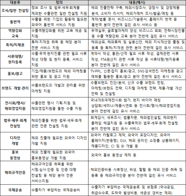 최종 선정된 기업에게는 전년도 수출규모에 따라 3천만 원에서 최대 1억 원까지 수출바우처를 지원한다. 기존에는 통관실적과 용역 및 전자적 무체물 수출실적을 기준으로 수출규모를 구분했지만, 올해부터는 간접수출 실적과 지식재산권(IP)이나 로열티 등 계약서도 수출액으로 인정해 디지털 수출기업에 대한 지원을 강화한다.