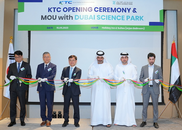 Dubai Science Park 프리존에서 지난 15일(현지시간) 진행된 개소식에는 UAE Dubai Science Park의 Marwan 청장, Hamad 이사를 비롯해 류제승 駐UAE대사, 문병준 두바이 총영사, KTC 안성일 원장 등 양국 산업을 주도하는 대표 이해관계자가 참석했다. 또, 개소식에서 국내 인증기관 최초로 기업의 수출지원을 위한 ‘DSP 프리존’과 업무협약을 체결했다.