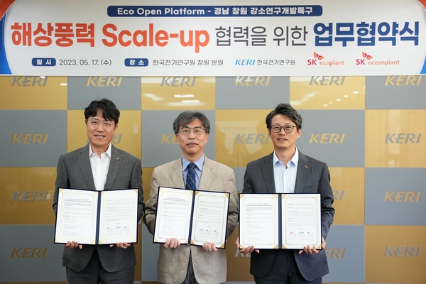 [기계신문] 한국전기연구원(KERI)이 지난 17일(수) 창원본원에서 SK에코플랜트, SK오션플랜트와 해상풍력 분야 기업 기술경쟁력 강화를 위한 ‘해상풍력 스케일업(Scale-up) 프로그램 업무협약’을 체결했다.