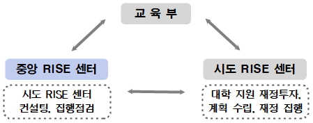 교육부는 지역주도 대학재정지원사업 예산을 교부받아 운영할 시·도 RISE 센터를 지원하는 중앙 RISE 센터를 한국연구재단으로 지정했다.