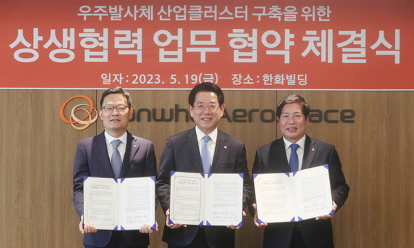 [기계신문] 한화에어로스페이스는 19일 서울 한화빌딩에서 전라남도, 고흥군과 우주발사체 특화지구 및 국가산업단지로 지정된 고흥을 우주발사체 산업의 중심지로 육성하는 ‘우주발사체 산업 클러스터 구축’ 업무협약을 체결했다.
