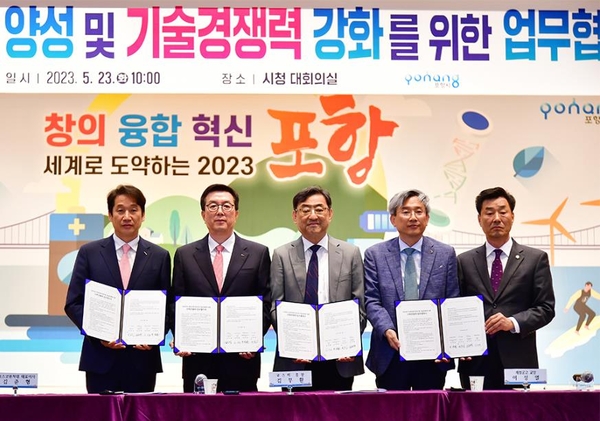 [기계신문] 포스코퓨처엠은 23일 포항시청 대회의실에서 포스텍(포항공대), 포철공고, 포항시와 ‘이차전지 전문인력 양성 및 기술경쟁력 강화를 위한 업무협약’을 체결했다.