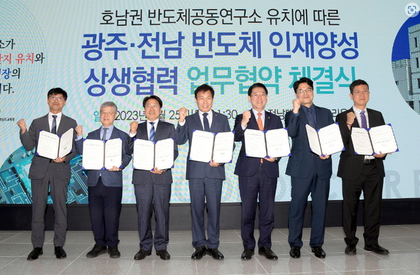 협약기관은 광주시, 전남도, 전남대학교, 순천대학교, 목포대학교, 광주광역시교육청, 전라남도교육청이며, 주요 내용은 ▲호남권역 반도체공동연구소 구축 및 활용 ▲광주·전남 반도체 특화단지 협력 ▲지역 반도체산업에 필요한 맞춤형 전문인력 양성 ▲초·중·고등 교육프로그램 운영 등 반도체 인재양성을 위한 긴밀한 상호 협력이다.