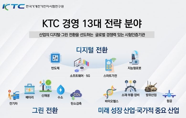 또한 지능형 로봇 분야는 KTC의 전략 분야 중 하나로 국내 최고 수준의 부품 평가 역량을 보유하고 있다. KTC는 로봇의 핵심 부품인 전동기, 감속기, 배터리 등 로봇 관련 부품 시험평가 서비스와 함께 로봇 분야 국가 R&D 사업 참여, 인증 컨설팅 등을 제공하고 있다.